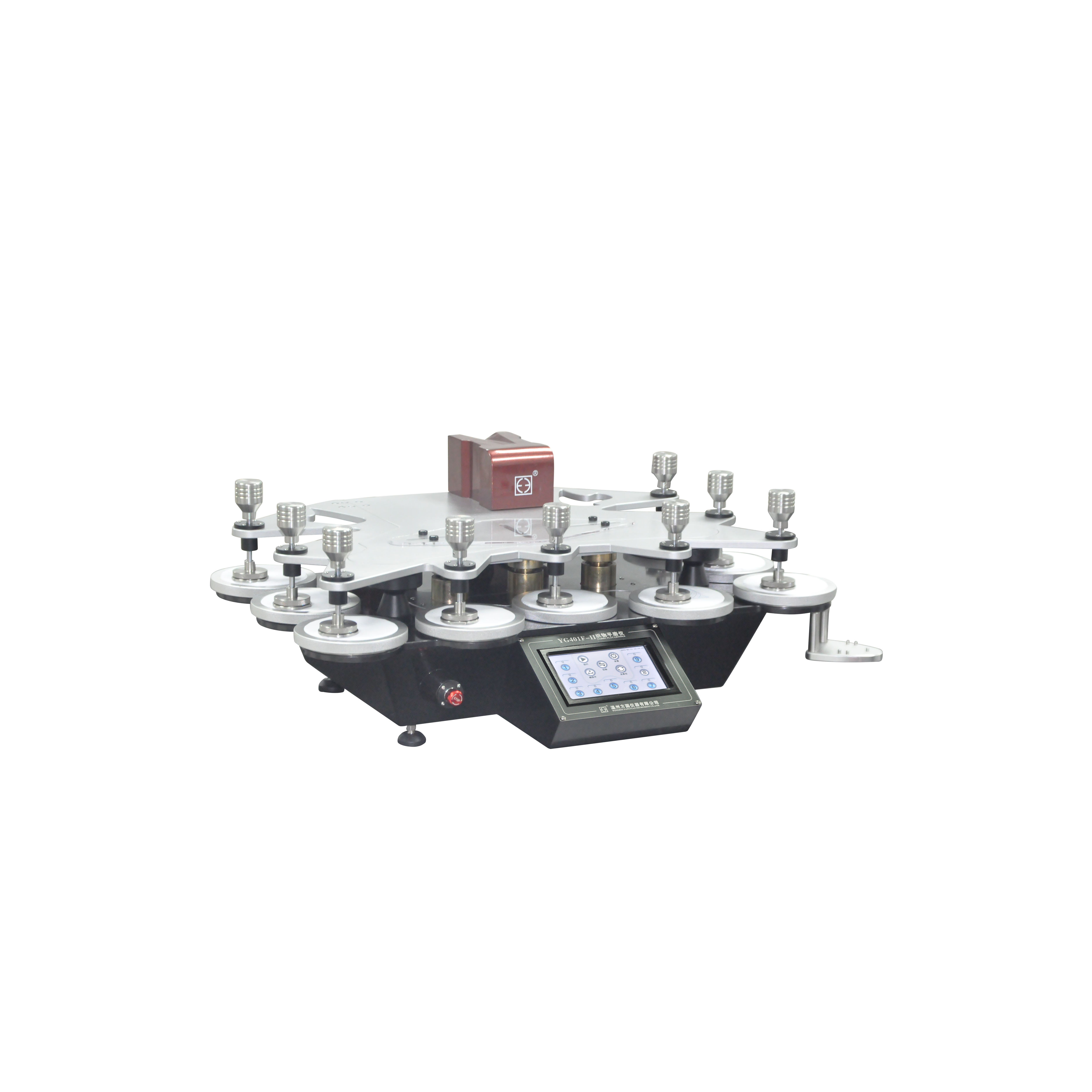 YG401F-II織物平磨儀(九工位) GB/T4802.2-2008,GB/T13775,GB/T21196.1,GB/T21196.2,GB/T21196.3,GB/T21196.4;FZ/T20020;ISO12945.2、12947;ASTM D 4966、4970、IWS TM112,可以增加球盤(pán)法測(cè)試功能(選配)等標(biāo)準(zhǔn)。